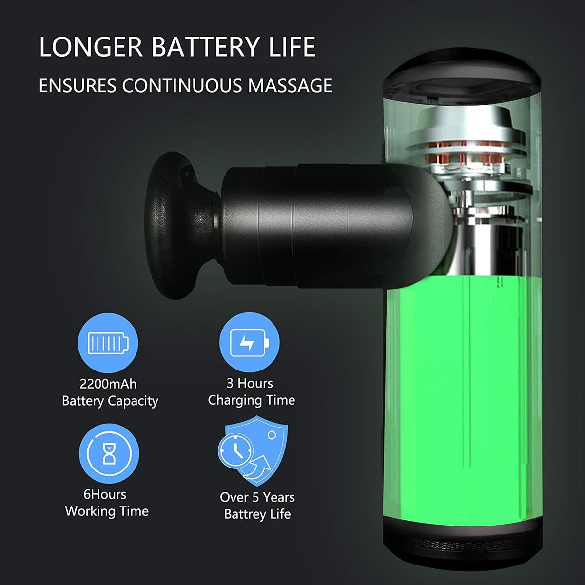 The massage gun helps with the activation and recovery of all muscle areas from head to toe. It is specially designed to be suitable for use on sensitive areas of the body.